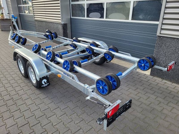 De Flex-roll Trailer 7m 2×1800 kg van Vlemmix Trailers is een zeer betrouwbare boottrailer om uw boot mee te vervoeren. Deze Flex-roll Trailer heeft een afmetingen van 700 x 220 cm. Dit model is uitgevoerd met twee assen van 1800 kg. De boottrailer heeft een eigen gewicht van 580 kg en een laadvermogen van 2920 kg daardoor houdt hij voldoende marge over voor veel praktische opties die u helpen tijdens vervoer, maar ook op de trailerhelling.