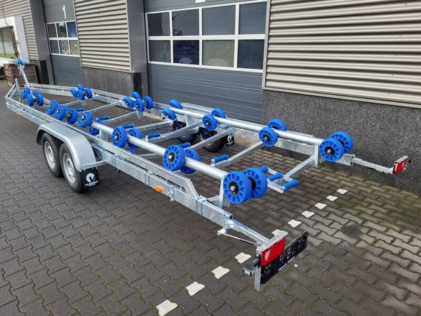 De Flex-roll Trailer 10m 2×1800 kg van Vlemmix Trailers is een zeer betrouwbare boottrailer om uw boot mee te vervoeren. Deze trailer heeft de afmetingen van 1000 x 255 cm. Dit model is uitgevoerd met twee assen van 1800 kg. De boottrailer heeft een eigen gewicht van 700 kg en een laadvermogen van 2800 kg en daardoor voldoende marge over voor veel praktische opties die u helpen tijdens vervoer, maar ook op de trailerhelling.